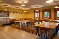 Zur Verfügung stehen 3 Einzelzimmer, 1 Doppelzimmer und 10 Mehrbettzimmer von 2 bis 10 Betten. Waschräume und Toiletten werden gemeinsam genutzt. Es gibt zwei Ess- und Aufenthaltsräume, ein sog. Sockenraum sowie eine großzügige Küche. Die Küche ist mit Geschirr für 80 Personen und allen benötigten Werkzeugen sowie Kaffeemaschinen, Wasserkochern, Mikrowelle, einer Industriespülmaschine sowie einem Backofen ausgestattet.