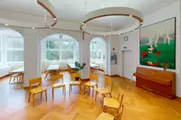 Die Villa Sophia bietet zwei Begegnungsräume mit einem Klavier, einen großen Speisesaal, eine Groß- und eine Teeküche sowie 8 Schlafräume als Mehrbettzimmer.