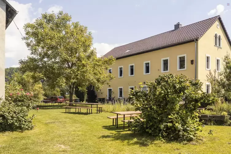 Auf dem Gelände eines ehemaligen Bauernhofes stehen ein Wohnhaus, eine Scheune sowie eine Zeltwiese. Im Haus befinden sich 29 Gästebetten, aufgeteilt in insg. 5 Doppel- und Viererzimmer, eine Familiensuite samt eigener Küche und Bad sowie dem Schlafsaal. Die Zeltwiese bietet Platz für etwa 10 Zelte bzw. 25 Personen.Unser liebevoll-natürlich gestalteter Garten lädt mit vielen gemütlichen Plätzen zum Entspannen und Verweilen ein. Im Scheunensaal befinden sich eine Gemeinschaftsküche, ein Holzofen, Kicker und Tischtennisplatte. Hier kann gemeinsam gekocht, gegessen und gespielt werden. Ein kleines Highlight ist zudem unser liebevoll selbstgebauter Saunawagen!