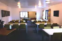 Hier befinden sich die Küche, ein Kaminzimmer, ein Fernsehzimmer, ein Seminarraum und ein Bad.