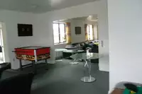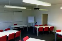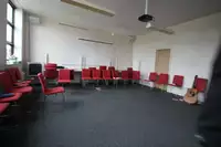 Das Nebengebäude: Im Erdgeschoss gibt es einen großen Speise-/Festsaal mit eigener Küche und in der ersten Etage einen weiteren Seminarraum und ein Bad mit Dusche/WC.