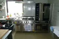 Es gibt eine gut eingerichtete SV-Küche mit: