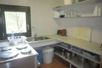 Kamin, Sauna, Tischtennisplatte, Grillstelle, Parkplatz, Küche ist ausgestattet mit Großküchenherd, Kühlschrank und Backofen, keine Spülmaschine