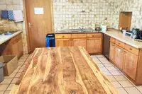 Das Gruppenhaus Hof an der Aue bietet 11 Schlafräume für bis zu 32 Personen, teils mit eigenem Bad oder Waschbecken. Voll ausgestattete Selbstversorgerküche mit 2 Herden, Backöfen, Spülmaschine, Kühlschrank, Geschirr & Töpfen. Großer Speisesaal mit Klavier, Sitzecken, Wintergarten, Terrasse, Grillplatz und Feuerstelle. Barrierefreies Bad im EG, WLAN, Waschmaschinen-Nutzung auf Anfrage. Für größere Gruppen sind weitere Ferienhäuser und Zeltplätze vorhanden.Aktivitäten auf dem Hof & in der Region