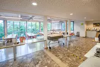 4 barrierefreie Zimmer, Beamer, akustikoptimierte Decken, CD- und DVD-Player, DVD-Recorder, Flipchart, Moderationskoffer, Overheadprojektor, Pinnwand, TV, WLAN. Keyboard, Tischtennisplatten innen und außen, Beachvolleyballplatz, Bolzplatz, Volleyballfeld, Basketballkorb, große Grillhütte.Freizeit