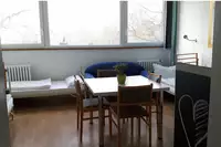 19 moderne und helle Einzel-, Doppel- und Mehrbettzimmermit eigenem Bad oder Gemeinschaftssanitär voll ausgestattete Küche zur Selbstversorgung 2 Freizeiträume 44 m² und 22 m² mit Büchern und Spielen, einer mit TV kostenlos abschließbare Schränke auf allen Zimmern Sanitäre Anlagenzentral auf den Etagen kostenfreie Parkplätze vor dem Hostel, kostenpflichtige Parkplätze auf dem Hof, Busparkplatz gegenüber vom Hostel "An der Hafenbahn", Motorräder parken auf dem Gelände kostenfrei, Fitnessraum
