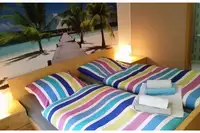 Allerbestens für Familientreffen geeignet, vor allem wegen der vielen DZ und auch EZ, dem großen Gemeinschaftsraum und Terrasse und Garten. Alles tadellos sauber! Küche stand für Selbstversorgung ohne jegliche Einschränkung zur Verfügung, super ausgestattet, ließ keinerlei Wünsche offen! Lediglich die Videoüberwachung ist gewöhnungsbedürftig, das kam nicht bei allen gut an...