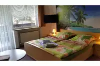 Wir haben die Pension für eine Familienfeier mit ca. 45 Personen mit Ü/HP gebucht. Die Wirte waren sehr freundlich, entgegenkommend und hilfsbereit. Getränke wurden zu einem günstigen Preis zur Verfügung gestellt und auch Sonderwünsche, wie reduzierte Essenanzahl am Anreisetag oder Kaffeetrinken mit selbstmitgebrachtem Kuchen waren kein Problem. Der Charme des etwas in die Jahre gekommenen Hauses liegt in der besonderen Eignung für Familienfeiern mit vielen Ein- und Zweibettzimmern (tlw. Aufbettung mögl.), alle mit Du/WC und dem insgesamt sehr guten Preis-Leistungs-Verhältnis. Bei schönem Wetter bietet die Umgebung viele Ausflugs- und Wandermöglichkeiten.