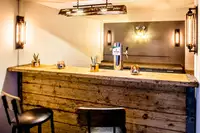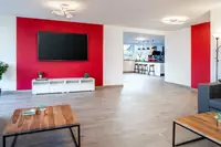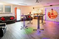 Das Erdgeschoss lädt zum Kochen, Essen und gemütlichem Chillen im Wohnbereich ein. Für Seminare und auch als Partyraum verwendbar ist im Untergeschoss ein Raum mit ca. 70 m² eingerichtet, der optional für 200,00 € bzw. 400,00 € mit Theke und Zapfanlage dazu gebucht werden kann.