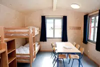Sieben hochwertige Hütten stehen zur Verfügung. 6 Hütten - 6 Betten und 1 Hütte - 4 Betten für Betreuer. Die Preise (brutto) verstehen sich inkl. Frühstück im Bistro, Tageskarten für das Schwimmbad (ohne Benutzung der Sauna) und Nutzung des separaten Aufenthaltsraumes (ca. 35 m²). Alle Hütten haben einen W-Lan-Anschluss, kostenlose Tickets für die Freischaltung gibt es bei der Schwimmleitung.Freizeit