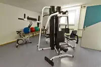 PC-Raum, Kaminzimmer, Partykeller, Lesezimmer, Filmprojektor, Diaprojektor, Overheadprojektor, Fotokopiergerät, Fernsehgerät, Videorecorder, Beamer, Computer, W-Lan, Internetzugang, Tagungsmedien, Multimediacenter, Videokamera, Stereoanlage, Ballspiele, Tischtennisplatte, Fußballkicker, Billardtisch, Klavier, Gesellschaftsspiele, AutoparkplatzDie Küche ist ausgestattet mit einem Geschirrspüler, Haushaltsherd, Mikrowelle, Kühlschrank, Backofen und Gefrierschrank/-truhe.