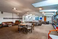 Die 4 Aufenthaltsräume erklären sich wie folgt: ein Speisesaal (120 qm), ein kleinerer Speisesaal (35 qm), beide verfügen über einen Projektor und eine Leinwand. Ein Aufenthaltsraum mit kleiner Teeküche und TV (120 qm) und ein Gymnastiksaal mit Sprossenwänden und Basketball. Auch eine neue Lehrküche steht zur Verfügung.