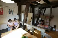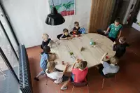 Jede Gruppe kann einen eigenen Gruppenraum im Haus nutzen. Zusätzliche Räume und eine ausgebaute Scheune stehen in etwa 300 Meter Entfernung zur Verfügung Tageslichtprojektor, Leinwand, Flip-Chart, Stellwände und CD-Player können ausgeliehen werden.