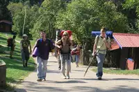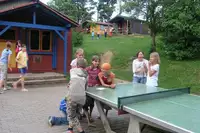 Weitläufiges Gelände mit Lagerfeuerplatz, Grillplätzen, Tischtennisplatten, Volleyball-/Federballplätze, Bolzplatz, Basketballkörbe. Kinderspielplatz und Wiese am Bach. Großes Tipi. Auf Wunsch geologische Exkursionen, Abenteuerprogramme mit Hochseilstationen, Outdoor-Olympiade, Floßbau usw.Ausflugsziele