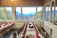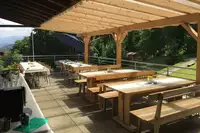 Das Haus bietet 74 Betten und ist in 3 Trakte unterteilt mit je separaten Wasch- und Duschräumen: Trakt A (im Unter- und Erdgeschoss barrierefrei) und B mit je 2 Doppelzimmern, 4 Vierbettzimmern und 2 Fünfbettzimmern / Trakt C mit 7 Doppelzimmern.Die grosse Küche ist professionell und komplett ausgerüstet. Es gibt ein rollstuhlgerechtes WC mit Dusche. In 4 Gruppen-/Aufenthaltsräumen mit einer Größe unter 50m2, einem Gruppenraum (Ess-Saal) mit einer Größe über 50m2 und einem Spielzimmer (Kicker, Tischtennis) ist ausreichend Platz für Indoor-Tätigkeiten vorhanden. Eine überdachte Terrasse lädt zum gemütlichen Verweilen ein. WLAN ist verfügbar.
