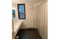 2 Leiterzimmer mit 2 Betten (Stockbetten), 2 Schlafräume mit 4 Betten (Stockbetten), 2 Schlafräume mit je 6 Betten (Stockbetten), 2 großzügige Bäder mit jeweils 3 Duschen, 2 WCs und 3 Waschbecken, Aufenthaltsbereiche im Gang