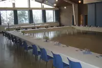 6 freistehende Gästehäuser mit bis zu 31 Betten, Zweifeld-Sporthalle, Hallenbad, Sauna, großer Saal (auch teilbar), Seminarräume, Kegelbahnen, Discothek mit Billard u. Tischkicker, Werkräume, Kiosk,250 Autoparkplätze