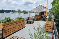 Für Gruppen bis 20 Personen ideal, wenn man keine Angst vor Spinnen hat. Kleine Kajüten mit bequemen Betten, saubere Duschen und Toiletten, ausreichend Kühlschränke, leistungsfähiger großer Backofen, großer Gruppenraum, und sehr nett, wenn das Wetter es hergibt, auf Deck zu verweilen. Gute ÖPNV-Anbindung zur Innenstadt. Erholsam, nach Stadtaufenthalten ins Grüne zu kommen. Supermarkt 15 Min. Fußweg entfernt.