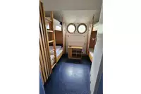 Die Übernachtungsplätze befinden sich in schiffstypischen Kabinen (insgesamt 24 Betten) sowie im Tagungsraum (vier Betten). Die gut ausgestattete Küche kann für eine Selbstversorgung genutzt werden. Für den täglichen Bedarf stehen Einkaufsmöglichkeiten in der Nähe zur Verfügung.