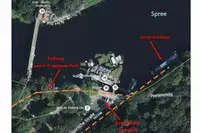 Sie fahren mit der S-Bahn zum „Treptower Park“ und nehmen den S-Bahn-Ausgang, der zum Wasser führt. Dort laufen Sie immer geradeaus die Spree entlang (ca. 2 km und 25 Minuten Fußweg). Neben dem Restaurantschiff „Klipper“ finden Sie unser Schiff.
