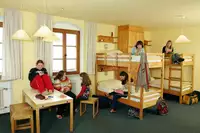 Unser Haus bietet in Einzel-, Zwei-, Drei-, Vier- und Sechs-Bett-Zimmern Platz für mehr als 160 Gäste. Waschgelegenheiten befinden sich in den Zimmern, Dusche und WCs auf jeder Etage. Für Leitungspersonal bzw. Lehrkräfte stehen in der Regel Einzel- bzw. Zwei-Bett-Zimmer mit Dusche und WC zur Verfügung.Durch mehrere behindertengerechte WCs und Duschen sowie Aufzüge ist unser Haus bedingt barrierefrei zu nutzen. Nach Absprache stehen Ihnen Aufenthalts- und Seminarräume, ein Meditationsraum mit Sakristei und ein Musikzimmer zur Verfügung.