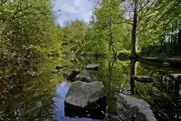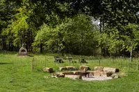 Das Haus ist von einem 30.000 m² großen naturnahen Gelände mit Hecken, Streuobstwiesen und Teichen umgeben. Im Außenbereich befinden sich eine Tischtennisplatte, ein Bolzplatz, verschiedene Sitzgruppen und eine feste gemauerte Feuerstelle. Einer der Teiche ist als Wasserspielplatz nutzbar. Außerdem steht eine große Mehrzweckhalle auf dem Gelände, in der z.B. Kinder auch bei schlechtem Wetter spielen und toben können.Ausflugsziele