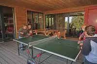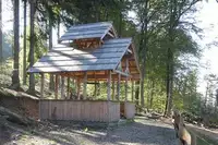 Überdachte Veranda mit Sitzgelegenheiten, Tischtennisplatte, Spielplatz mit Schaukel, Rutsche, Kletterturm, Spielfeld zum Fußball-, Volleyball- und Basketballspielen, Grillhütte, Waldwerkstatt.Ausflugsziele