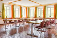 Freizeitraum (mit Kicker, Tischtennisplatte), Multi-Media-Raum (mit Audio-Video-Hi-Fi-Anlage, Beamer, Leinwand), Nebenraum (mit Sofas & Holzofen); Gastronomie-Großküche mit Ausstattung, Spielmaterial & Gesellschaftsspieleschrank; Lagerfeuerplatz, Grillplatz, & Spielbereich (mit Basketballkörben & Mini-Fußballtoren), Autoparkplätze, Telefon, W-Lan kostenlosAusflugsziele