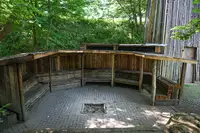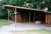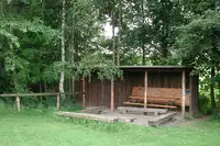 Eigenes Versorgungshaus für den Zeltplatz mit 4 WC, 2 Duschen, 2 Waschräumen, Küche und überdachtem Feuerplatz.
