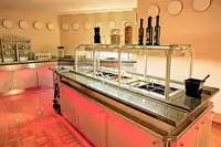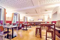 - Bistrobereich mit Verkauf von Snacks und Getränken, Cocktailbar und Kaffeespezialitäten (rund um die Uhr verfügbar!)