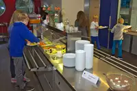 Frühstück, Mittag- und Abendessen, zubereitet mit regionalen Produkten, bieten wir in unser lichtdurchfluteten Mensa an, gerne können Sie auch auf unserer Terrasse essen oder den Abend gemütlich ausklingen lassen.
