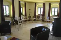 Die Seminar- und Aufenthaltsräume laden ein zum Feiern, thematischen Arbeiten, Musizieren etc. Da wir bei den Sanierungsarbeiten viel Wert gelegt haben auf die behutsame Sanierung der historischen Bausubstanz, verfügt im Ergebnis unsere Gästehausanlage über ein ganz besonderes handwerklich - künstlerisches Flair.