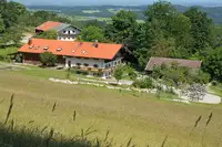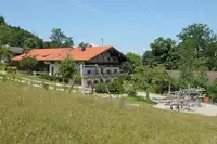Eingebettet in die herrliche Natur des Chiemgauer Voralpenlandes, liegen unser beiden Gruppenhäuser auf 720m Seehöhe - umgeben von Kräuterwiesen und Wald - 1,8 km außerhalb der Ortschaft Frasdorf auf dem Sagberg.Das große Haus "vorn" mit 24 Betten ist der vordere Teil, der Wohnteil des historischen Bauernhauses, und vermittelt mit seinen dicken Mauern und Fensterlaibungen und der originalen Ausstattung die Atmosphäre eines Chiemgauer Bauernhauses.