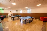 Beamer, Referentenschrank, Fernsehgerät, Videorecorder, Stereoanlage, Ballspiele, Werkraum, Tischtennisplatte, Fußballkicker, Billardtisch, Gesellschaftsspiele, 15 AutoparkplätzeFreizeit