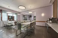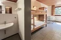 Jeder der bis zu 92 Gäste findet 19 Schlafräume mit eigener Waschgelegenheit und WC vor. 7 Zimmer für Familien verfügen zudem über eigene Duschen, weitere Einzelduschen befinden sich im Untergeschoss. Für unsere kleinen Gäste halten wir Babybetten, Hochstühle, Wickelauflage, Babyphone, Babykostwärmer, Kindertoilettensitze und eine kuschelige Spielecke bereit.Vier Aufenthalts- und Tagungsräume mit 15 bis 60 Sitzplätzen stehen für Unterricht, Lehrgänge und Freizeitgestaltung zur Verfügung. Eine besonders urige Atmosphäre bietet unsere Blockhütte, zu gemütlichen Abenden lädt unsere schön gelegene Terrasse ein.