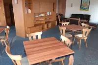 Im gemütlichen Fernsehraum befindet sich eine kleine Theke, die einläd zum Verweilen und Diskutieren. Als separater Rückzugsraum ist der Leseraum mit einer großen Ledercouch und weiteren Sitzgelegenheiten ausgestattet. Dieser Raum ist auch als Seminarraum geeignet, um mehrere Gruppen getrennt zu unterrichten.