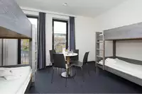 30 Zweibett- und 40 Vierbettzimmer mit insgesamt 220 Betten, alle Zimmer mit Dusche und WC, 7 Tagungsräume, Bistro, Gymnastikraum*, Sauna*, eigene Sporthalle*, Kunstrasen- Kleinspielfeld* und zwei Beachvolleyballplätze.* Diese Sportangebote sind kostenpflichtig.