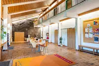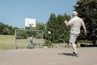 Familienraum für max. 25 Personen, Beamer, CD-Player, DVD- Player-/Recorder, Flipchart, Leinwand, Overheadprojektor, Moderationskoffer, Musikanlage, Pinnwand, TV, Whiteboard, WLAN. 2 Klaviere, Keyboard, Tischtennisplatten innen und außen, Hartplatz mit Flutlicht für Basket-, Hand- und Fußball, Volleyballfeld mit Kunstrasen, Barfußpfad, Boulebahn, Grillplatz mit Feuerstelle.Freizeit