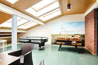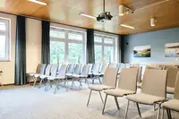 161 Betten in 31 Schlafräumen. Alle Zimmer mit Waschgelegenheit. Kaminraum und Galerie mit gemütlichen Sitzecken, Discoraum und mehrere Gruppen- und Seminarräume.Freizeit