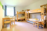 im Haupthaus überwiegend 6-Bettzimmer, (1 Sanitäreinheit für je 2 Zimmer), 4-Bettzimmer mit Etagenduschen, 2-Bett-Betreuerzimmer, 8 Blockhäuser, Tagungsräume bis 110 Personen. TV-Raum, Dia-, Overheadprojektor, Fotokopierer, Gesellschaftsspiele, Klavier, FahrradschuppenFreizeit