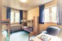 170 Betten (2- bis 8-Bett-Belegung), 13 Zweibettzimmer mit Dusche/ WC für Gruppenleiter. 7 Tagesräume für 20-100 Personen, 3 Klaviere.Freizeit