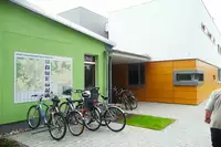 Die Raumaufteilung in dem neuen Komplex ist grundlegend auf die Beherbergung von Schulklassen ausgerichtet. So bieten beide Flure Platz für jeweils eine Schulklasse und deren Betreuung mit je 29 Betten. Die Betreuerzimmer verfügen über eigene Duschen und WC. Ansonsten sind den Mehrbettzimmern Gruppensanitäranlagen auf beiden Fluren (also jeweils einer Klasse) zugeteilt.Ein rollstuhlgerechtes Zimmer mit Tür zum Nebenzimmer für evtl. Pflegepersonal. Zwei Clubräume mit TV, Tagungsraum, Speiseraum, 9 Autoparkplätze, ein Busparkplatz, Fahrradunterstand, Möglichkeit zum Wäschewaschen und -trocknen.