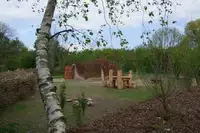 Riesige Freifläche für alle möglichen Veranstaltungen, Grill- und Lagerfeuerplatz, große überdachte Terrasse mit Sitzgelegenheiten und Blick zum Spielplatz für die Kleinen,