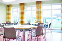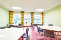 138 Betten in Zwei-, Vier- und Sechsbettzimmern, alle mit Dusche/WC, 4 Gruppen- und Seminarräume mit moderner Tagungstechnik und einem großzügigen Freizeitbereich. Die Gäste erwarten moderne Architektur, Top-Ausstattung und ein großzügiges Außengelände.Freizeit