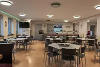 Betreuung, Essen, Räume ausgezeichnet! Raum für unsere Gruppe (45 Personen, 4 Tage VP) stand nur gegen besondere Miete von 120 €/Tag - zur Verfügung; mussten nach Verhandlung nur 2 Tage bezahlen. M.E. müsste bei mehrtägigem Aufenthalt die Unterbringung auch tagsüber inclusive sein. Oberes Doppelstockbett nur mühsam zu erklettern, nicht ganz ungefährlich, es fehlt mindestens ein Haltegriff