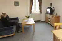 103 Betten, 20 Zimmer (2- bis 12-Bettzimmer), davon 7 mit Waschgel., 6 Leiterzimmer, 5 Familien-Appartements, 4 Tagungsräume mit 24 bis 60 Plätzen. Sanitäre Anlagen: 10 Duschen, 5 Gemeinschaftswaschräume.Freizeit