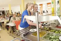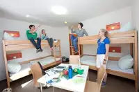 188 Betten in 52 Zwei- bis Vierbettzimmern - alle mit DU/WC, davon 10 Betreuerzimmer und4 Vierbettzimmer für Rollstuhlfahrer, 6 Tagesräume, Mehrzweckraum/Discoraum, Aufenthaltsraum für Lehrer und Gruppenleiter, Internet- Terminal, Terrasse, Fahrradabstellraum, Gepäckraum. Beamer, TV, Flipchart, Metaplanwand, Pinnwand, Moderationskoffer, Overheadprojektor, Musikanlage, DVD-Player, E-Piano