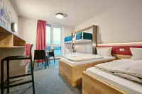 200 Betten in Zwei- bis Vierbettzimmern, alle mit Dusche/WC und drei davon barrierefrei, 5 Tagungs- und Seminarräume mit moderner Tagungsausstattung, eine Tagungs-Lounge, Food Store, große Lounge, Terrasse, Waschmaschine und Trockner (Münzsystem)Ausstattung für Familien: Kinder, das macht Spaß!