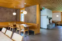Insgesamt 119 Betten. Duschen/WC auf der Etage. Unterteilbarer Aufenthaltsraum, Lounge-Ecke, Fernsehecke, Leseraum mit Bibliothek, Kinderspielecke, Bike-, Ski- und Wachsraum, Trocknungs- und Schuhraum, Tischtennis und Tischfussball, Kiosk mit Souvenirs, Snacks und Getränken, Wanderkarten- und Spielverleih, Kostenloses Gepäckdepot, 20 Parkplätze für eingecheckte Gäste, Internetcorner, WiFi (kostenlos)Freizeit