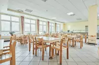 6 Rollstuhlgerechte Zimmer, Fernsehräume, Clubraum, 12 Appartements mit Fernseher, Cafeteria, Klavier/Flügel, TV, Video, Diaprojektor, Overheadprojektor, Mikrofonanlage, Stereoanlage, Beschallungsanlage, Rednerpult, Fotokopierer, Leinwand, Flipchart